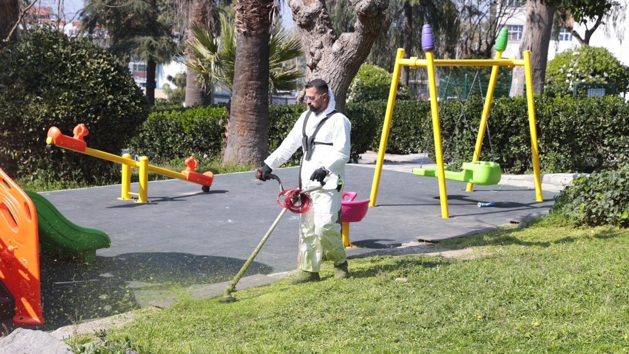 Baharın yüzünü göstermesiyle çoğalan yabani otların temizlendiği ve çimlerin biçildiği çalışmalar, sadece park alanlarıyla sınırlı kalmadı. Park çevreleri ve bağlantılı sokaklarda da devam eden çalışma kapsamında özellikle kuruyan dallar nedeniyle risk oluşturan ağaçlar tespit edilerek budandı. Böylece hem çevre güvenliği sağlandı hem de şehre estetik bir görünüm kazandırıldı. Sokaklara taşan yabani otlar da temizlenerek yayalar için sağlıklı ve güvenli bir yürüyüş ortamı oluşturuldu.