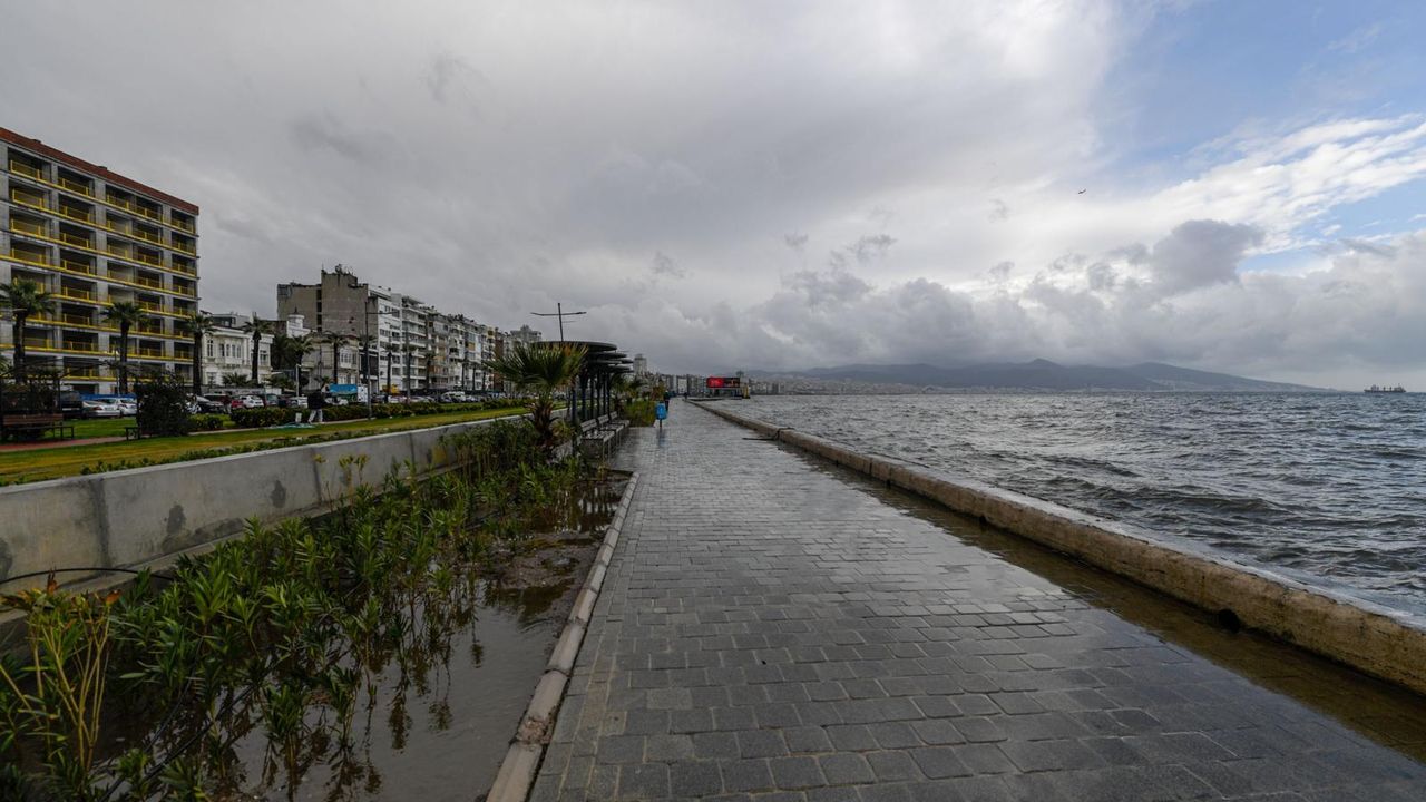 İzmir Büyükşehir Belediyesi tarafından Kordon’da inşa edilen geçici fırtına duvarı, sabah saatlerinde etkili olan sağanak yağış ve fırtınanın yol açabileceği deniz taşkınını engelledi. Hava koşullarının olumsuzlaşmasıyla birlikte Fen İşleri Dairesi...