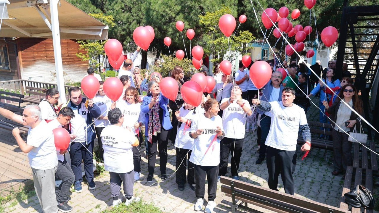 Konak Engelsiz Yaşam Köyü’nde düzenlenen Otizm Farkındalık Günü etkinliğinde ‘Biz de Varız’ diyen merkez öğrencileri, farkındalık için gökyüzüne kırmızı balonlar gönderdi.